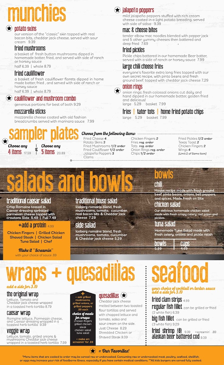 The menu features a variety of wing flavors and preparations—from tangy lemon pepper to hot and spicy—alongside popular side dishes like crispy onion rings and fried mushrooms. For those looking for something different, there are sandwiches and burgers like the Mushroom Swiss Burger or the Fish Sandwich Combo, bringing familiar flavors with a hometown feel.